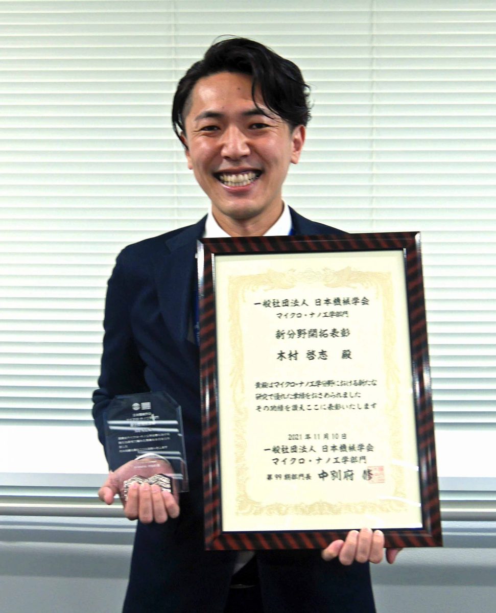 工学部機械工学科の木村啓志准教授(マイクロナノ研究開発センター兼務)がこのほど、「日本機械学会マイクロ・ナノ工学部門 新分野開拓表彰」を受賞。11月9日から11日にかけてオンラインで開催された「マイクロ・ナノ工学シンポジウム」で表彰されました。